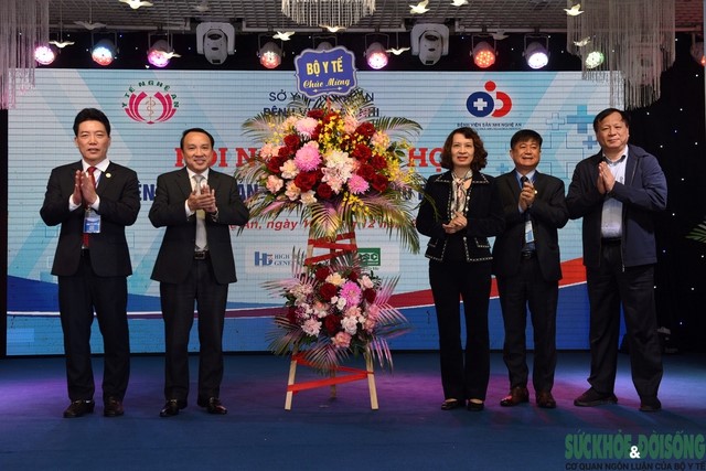 Phó Giáo sư, Tiến sĩ Nguyễn Thị Liên Hương – Thứ trưởng Bộ Y tế tặng hoa chúc mừng Hội nghị khoa học chuyên ngành Sản - Nhi Nghệ An mở rộng, do Bệnh viện Sản Nhi Nghệ An tổ chức