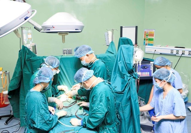 Các bác sĩ Bệnh viện Sản nhi Nghệ An phẫu thuật bệnh lý tim bẩm sinh đảo gốc động mạch phức tạp. Ảnh Yến Phương